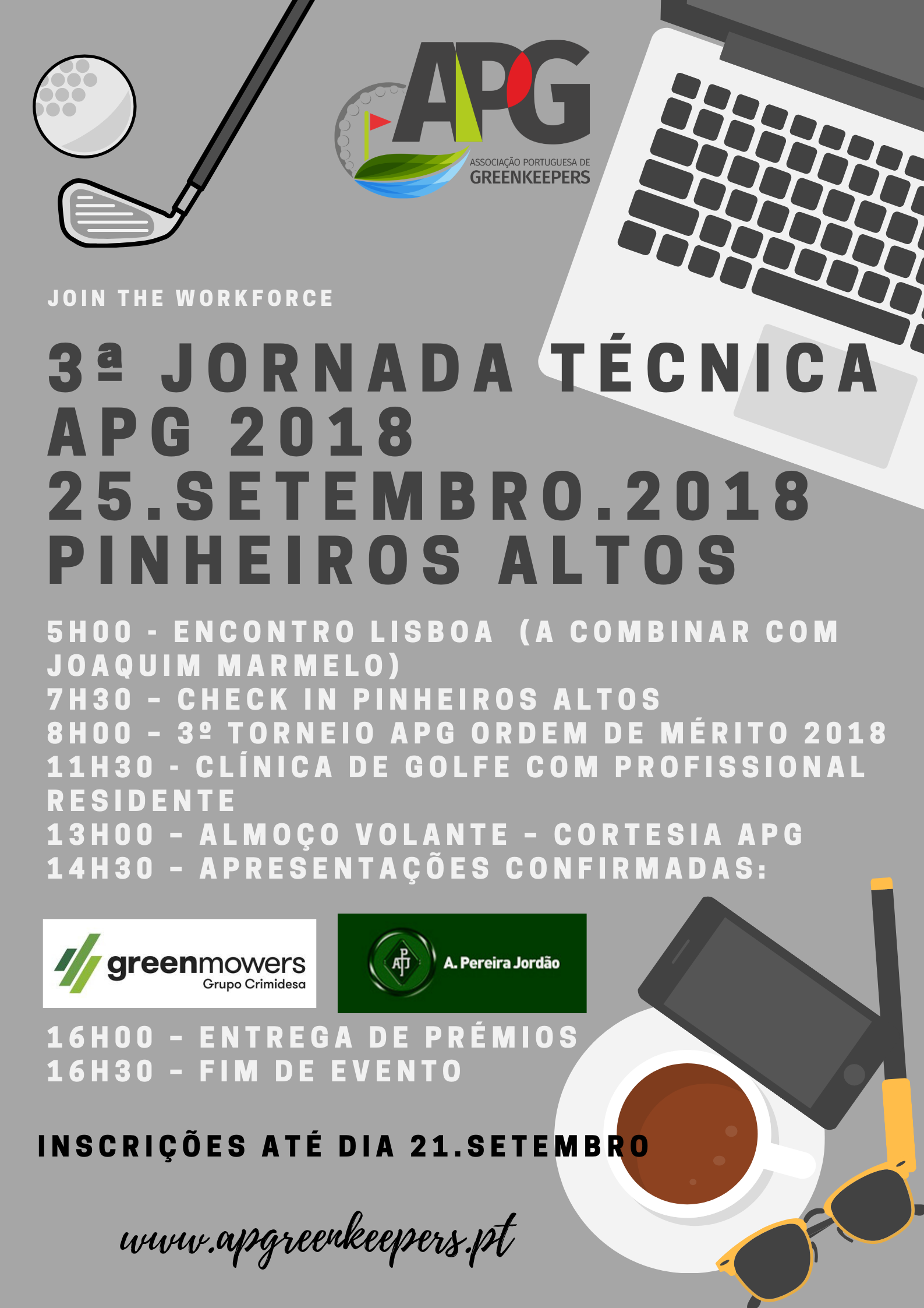 É já no proximo dia 25 de Setembro que se vai realizar a 3ª Jornada Técnica APG, desta vez no campo de golfe Pinheiros Altos. Gostariamos de partilhar convosco o programa do evento que temos a certeza que será do agrado de todos.