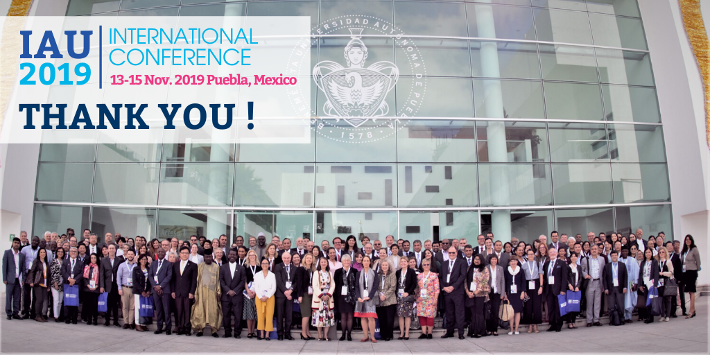 The IAU 2019 International Conference has just ended in Puebla, Mexico. Organized in cooperation with BUAP, the Conference drew 250 participants from 60 countries to debate on the necessary transformations of higher education for the future. The presentations are available on the Conference website. Many insightful discussions took place, bringing new perspectives on the role of higher education today, the one we want for tomorrow and its relevance for societal development. This leads us to the theme for next year’s Conference, “Relevance and Value of Higher Education to Future Society”. Hosted on 3-6 Nov 2020 by University College Dublin, Ireland, this will be a General Conference where Members elect the IAU President and Administrative Board and adopt the next strategic plan. IAU will also be celebrating 70 years since its first General Conference which was held in Nice, France in 1950.