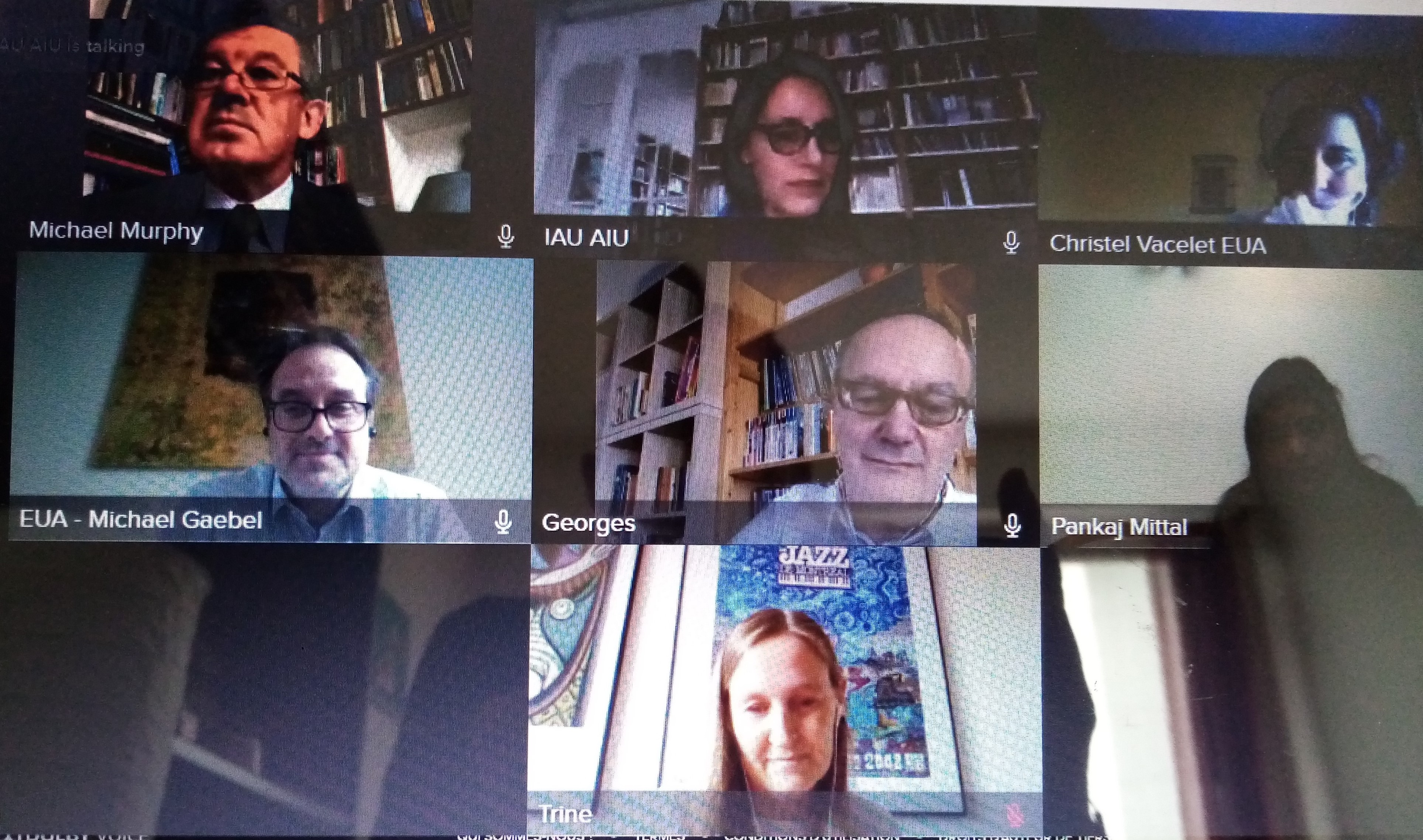 On 3 April 2020, IAU held a first virtual Global Meeting of IAU Member Associations and Organisations to exchange on initiatives that each of them undertake in the context of the current COVID 19 pandemic. Joint initiatives are being envisaged in regards to the future of higher education during and after this very disruptive period. Initiatives discussed included: internationalisation, international cooperation, student and staff health and well being, sharing of tools and practices, digitalisation, quality education, higher education values.