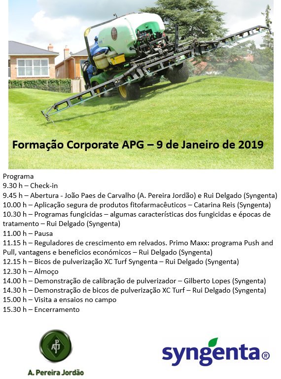 No próximo dia 9 de Janeiro realiza-se a Formação Corporate APG/Syngenta, que terá lugar no Pestana Vila Sol pelas 9.30h. Para se inscrever basta clicar