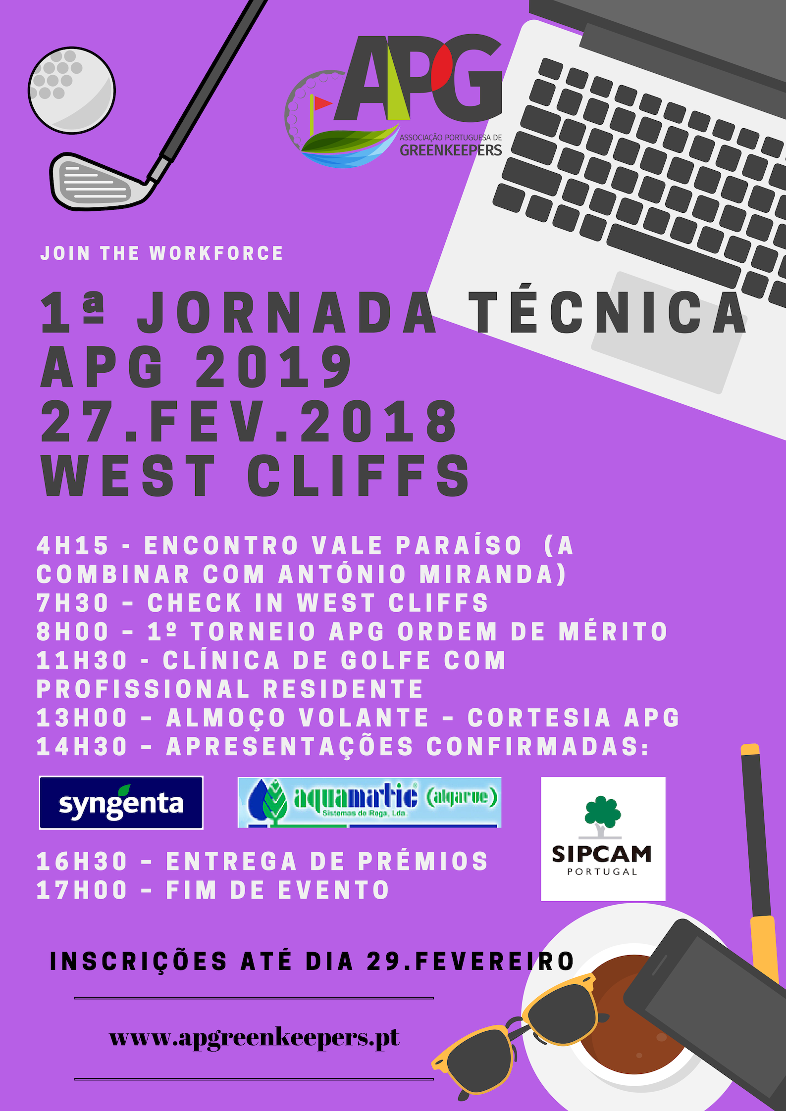 É já no próximo dia 27 de Fevereiro que se irá realizar a 1ª Jornada Técnica APG 2019 e que terá lugar no fantástico campo de golfe West Cliffs! Para se inscrever basta clicar