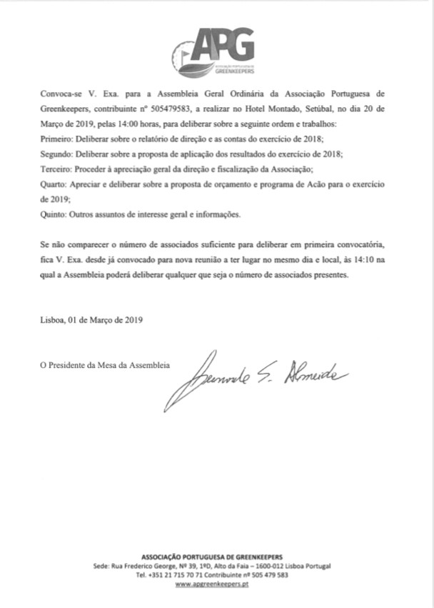 © 2019 Associação Portuguesa de Greenkeepers