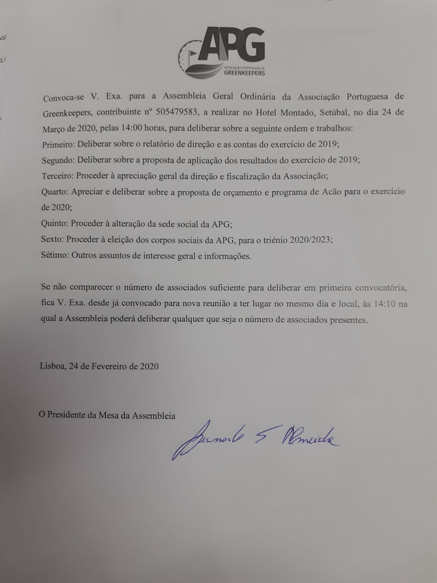 Convocatória para a Assembleia Geral APG