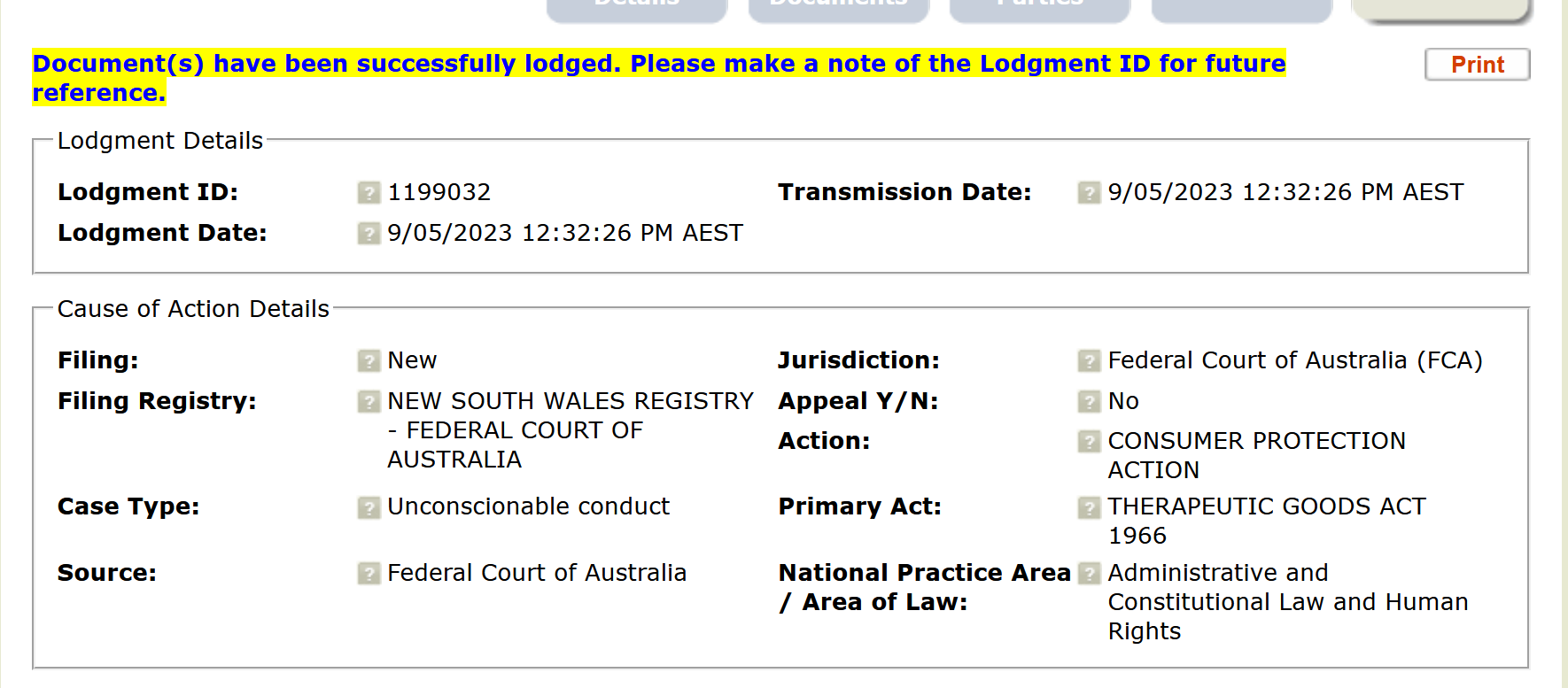 | After two re-lodgements correcting a few technical changes required for the Australian Federal Court we have been informed that the MAHA Class Action lodgement is now under review in the Federal Court Chambers. We believe the Federal Court are now aware of the great importance of this case for all Australians We await their decision. We have asked the Federal Court for an indication of timing, however, they are unable to supply such an estimate Here are the redacted two main case documents and lodgement details for you to read and share Originating writ https://bit.ly/436lSOJ Sworn Affidavit https://bit.ly/3C14yOU Lodgement https://bit.ly/438Ae0M We'll keep you informed |