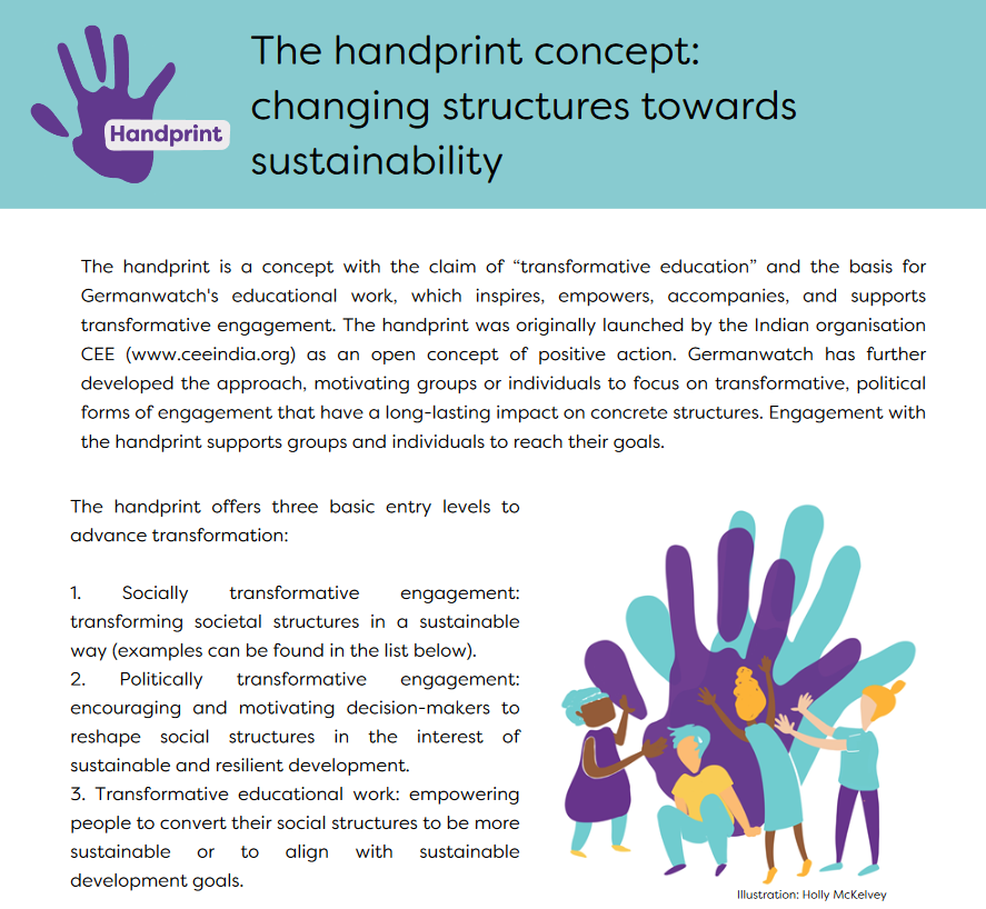 Germanwatch e.V. Bereich Bildung für nachhaltige Entwicklung handprint@germanwatch.org www.germanwatch.org | info@germanwatch.org Büro Bonn: Dr.Werner-Schuster-Haus | Kaiserstr. 201 D-53113 Bonn | Tel. +49 (0)228 / 60 492-0