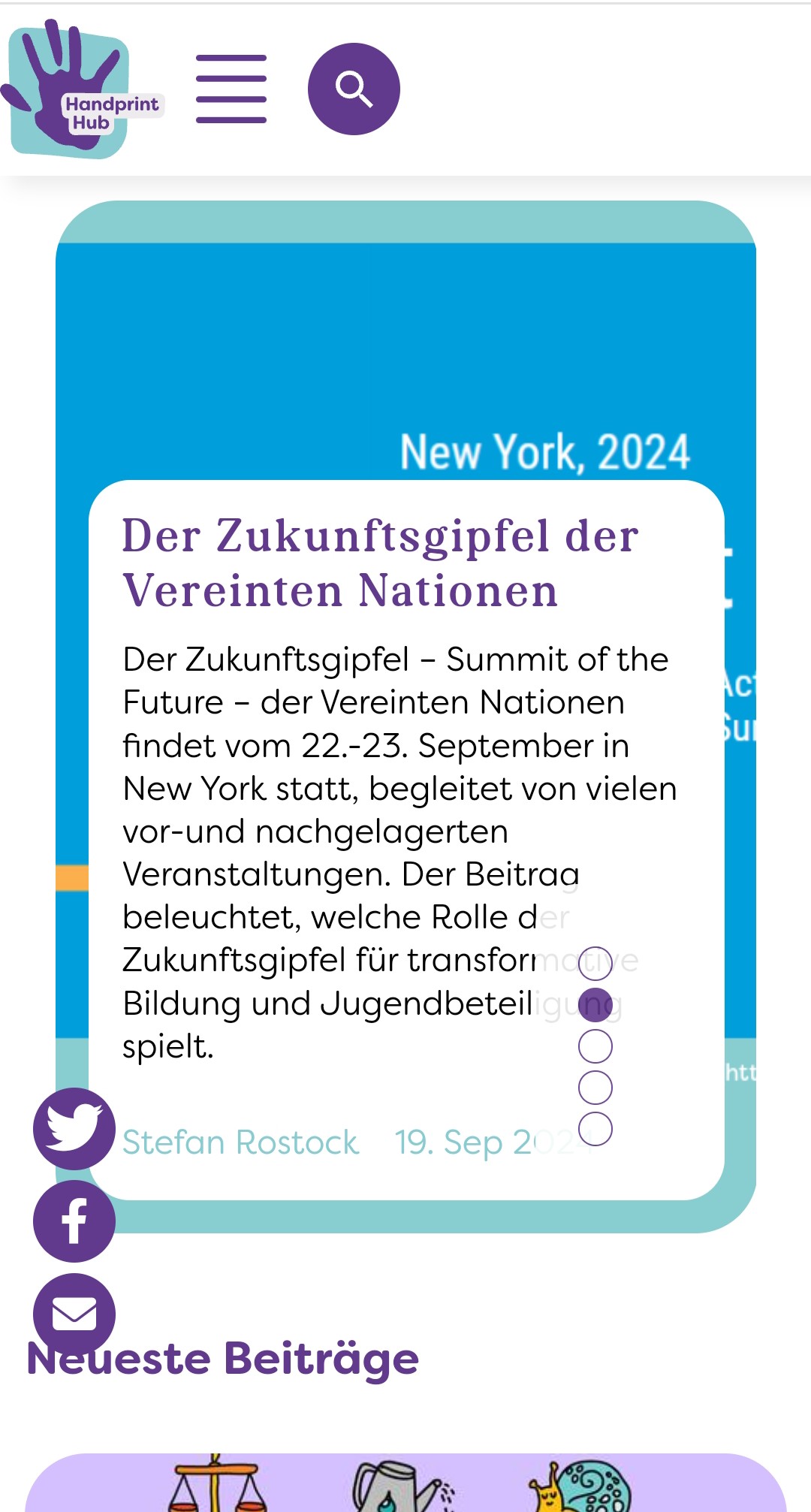 Liebe Leser:innen, der Herbst bringt nicht nur ein farbenfrohes Blätterspiel mit sich, sondern auch spannende Neuigkeiten aus dem Bildungsbereich: Wir haben über 1.000 Newsletter Abos - vielen Dank für euer Mitlesen, Mitmachen und Strukturen verändern! Im Jugendbeteiligungsprojekt #MitmischenNRW startete im September das Mentoring-Programm zwischen jungen Engagierten und Abgeordneten des Landtags NRW – ein Aufruf zur gemeinsamen Gestaltung unserer Zukunft. Für mehr Nachhaltigkeit am Arbeitsplatz bietet unser überarbeiteter Handabdruck-Test gemeinsam mit Brot für die Welt kreative Handlungsmöglichkeiten. Lasst euch inspirieren! Unsere Reihe Psychologie & Transformation endete im Oktober mit einer Veranstaltung über den Einfluss von Emotionen in Transformationsprozessen. Die Praxistipps für die Nachhaltigkeitskommunikation könnt ihr nun nachlesen. Damit wir diese wertvolle Arbeit auch in Zukunft fortsetzen können, bitten wir euch, euch gemeinsam mit uns gegen die geplanten Kürzungen im BNE-Bereich einzusetzen. Den Link zum offenen Brief findet ihr im Newsletter. Wir wünschen euch nun viel Freude beim Lesen! Transformative Grüße Aylin Lehnert Sowie das gesamte Team Bildung für nachhaltige Entwicklung bei Germanwatch: Simon Zerzawy, Carina Spieß, Daniela Baum, Katja Thiele, Melanie Gehenzig und Stefan Rostock |