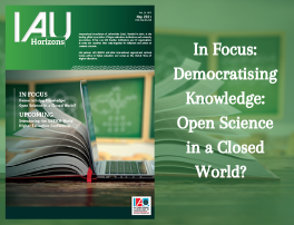 The latest issue of IAU Horizons presents a series of articles related to IAU's key priorities. The In Focus section is dedicated to Democratising Knowledge: Open Science in a Closed World? and features a series of thought-provoking papers discussing different aspects of Open Science from the perspective of universities across the world. The issue was launched in a webinar co-organised with the Center for International Higher Education (CIHE), Boston College.