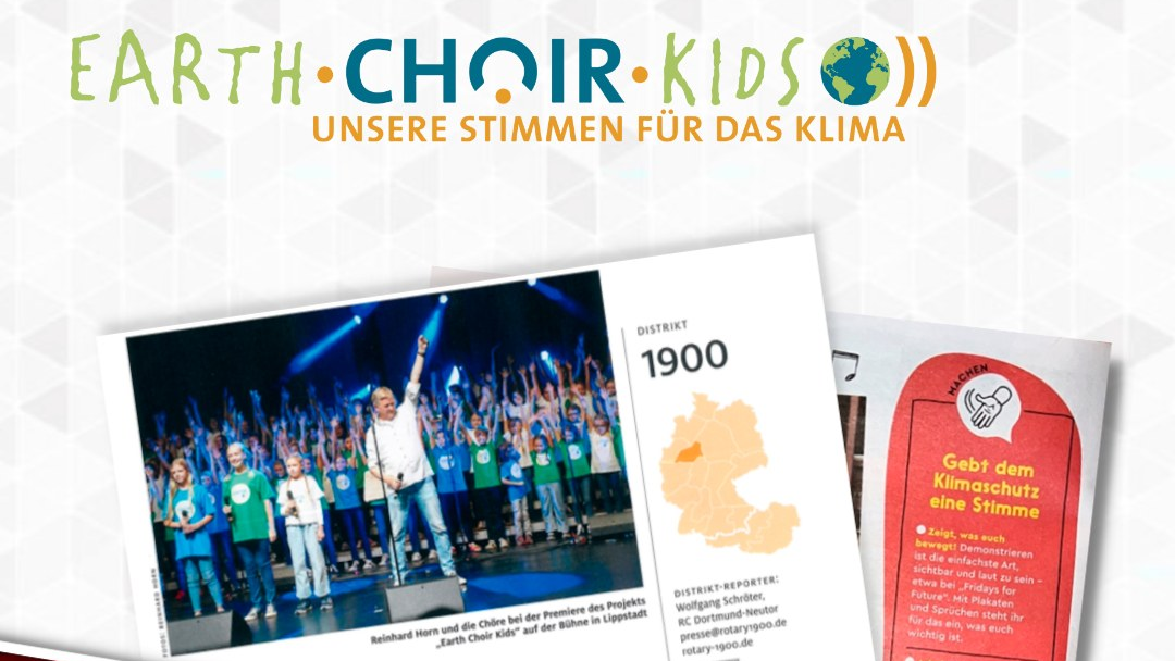 | | | Earth Choir Kids Das Projekt hatte seinen Start im letzten Jahr – und wir freuen uns, dass über das Projekt einige Artikel neben Zeitungen auch in größeren Magazinen erschienen sind. Im Dezember zum Beispiel im CENTAUR, dem Kundenmagazin von ROSSMANN mit 600.000 Exemplaren, dem ROTARY Magazin mit 100.000 und dem GEOLINO mit 50.000 Exemplaren. |