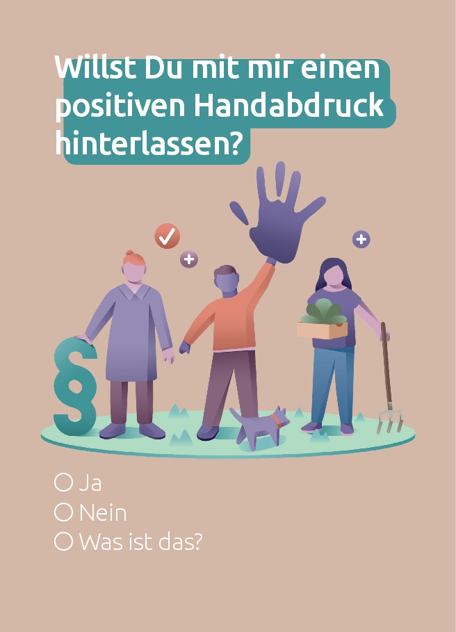 In den kommenden Monaten werden wir noch mehr Methoden, Hintergrundwissen, Handlungsmöglichkeiten und Praxiserfahrung zum Handabdruck aufbereiten und dafür neue Online-Angebote schaffen. Dabei brauchen wir eure Hilfe: